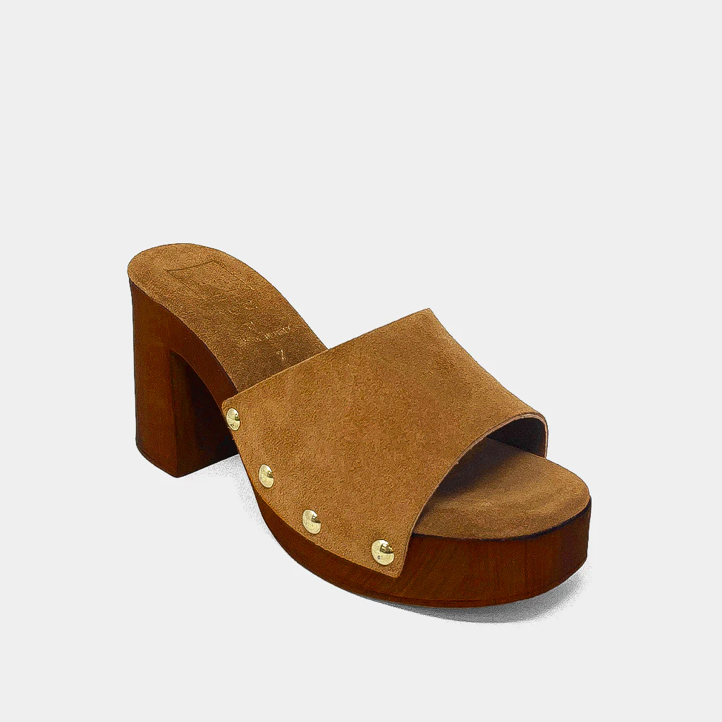 Introducing FABIOLA - the perfect pair of heeled sandals to make you feel like you've just walked out of the 70s. These sandals are a part of our Made in Italy collection and are made with soft leather, offering comfort and style all day long. The metallic studs add a touch of glam and shine to your outfit. The mid-height chunky heel crafted from wood is comfortable and versatile, making it perfect for any occasion. These sandals have a unique vintage-inspired design with a contemporary twist, making them ideal for any outfit - whether you're dressing up or down. Pair them with a chic dress for an elegant look or with cropped jeans for a more casual vibe. With FABIOLA, the possibilities are endless - get ready to turn heads!