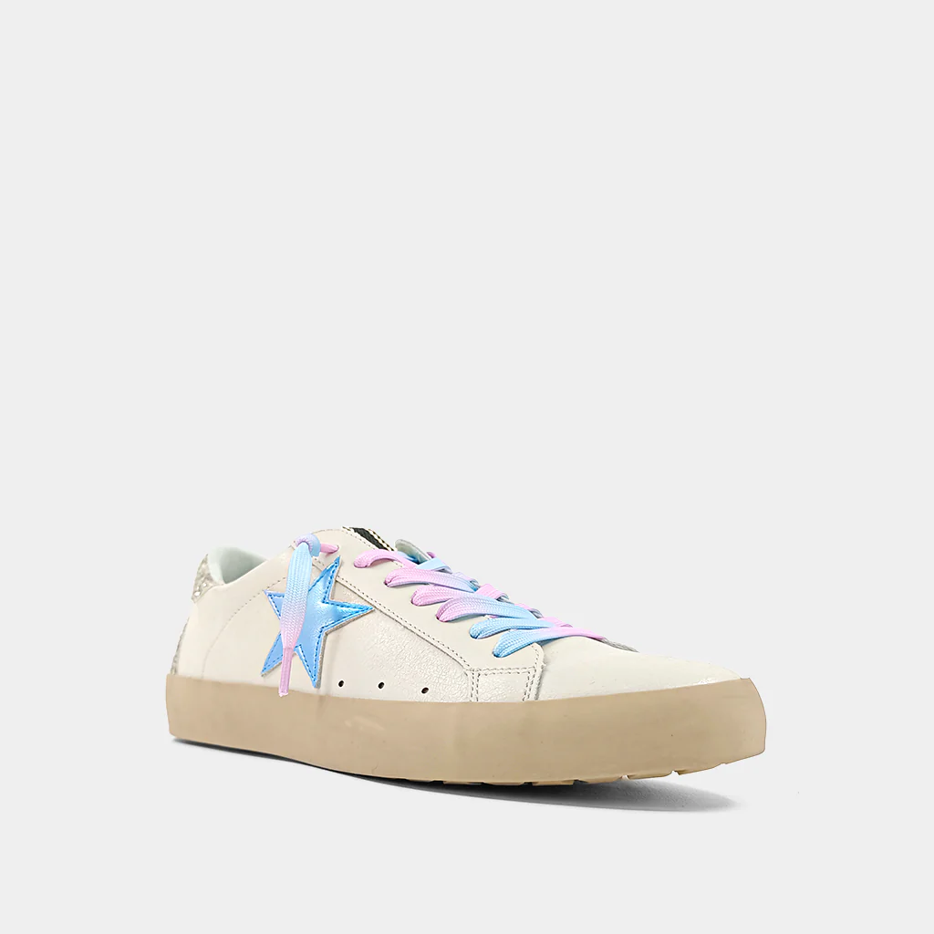The PAULA sneaker is a perfect blend of vintage and modern styles that provides excellent comfort and durability with its rounded toe and sturdy sole. You can choose from a variety of color combinations to match any outfit. This sneaker is crafted from high-quality materials such as faux leather, suede, and glittery embellishments, making it both dependable and stylish.