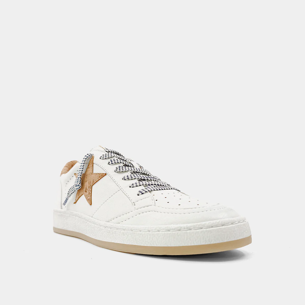 PAZ is one of our favorite must-have retro sneaker, with a low top upper body crafted in faux leather in white and cork details. These look amazing paired with shorts, cropped jeans and dresses.