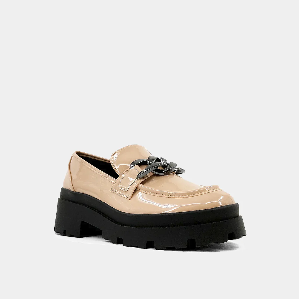 For a glam update on '90s-style chunky loafers, pick TALITHA. Made from faux patent leather, an eye-catching retro sole and finished with chain embellishments. Let yours serve as a neutral anchor to bright ensembles.