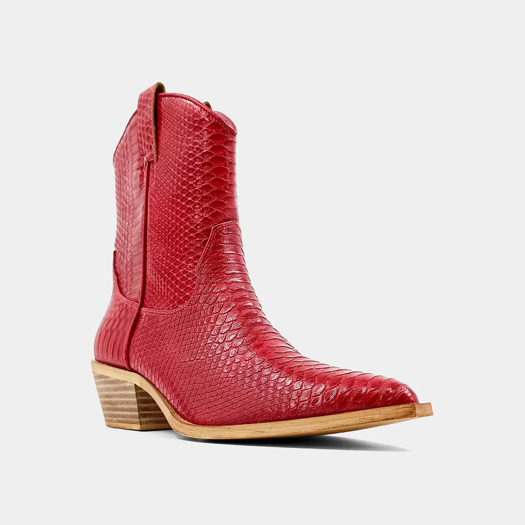 Our cowboy boots ZOUZOU are crafted from super soft faux snakeskin leather and set on a stacked heel with the perfect height. Wear them with anything from cropped jeans to midi dresses.